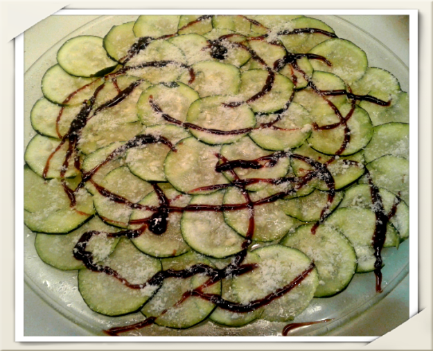 - Renteu bé el carabassó, i cru i sense pelar el talleu en làmines molt fines, tipus carpaccio (va molt bé la mandolina).