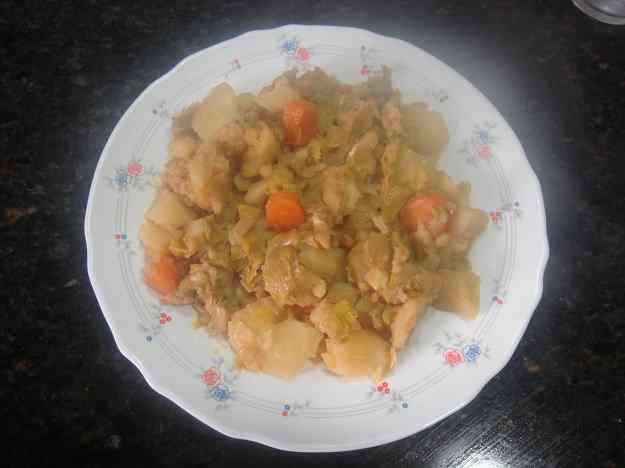 - Ara hi posem la mitja fulla de llorer i la cullerada de pebreroig i continuem coent fins que bulla. En eixe moment, n’abaixem el foc i deixem que coga tot fent xup-xup durant uns quaranta minuts. L’he deixat coure més temps perquè no m’agrada amb massa brou. I ja està.