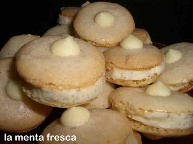 - – Si voleu decorar els macarons, un cop trets del forn és el moment de fer-ho, posant-hi el que vulgueu a damunt, perquè amb l’escalfor de la mateixa massa, s’enganxarà. ( jo hi vaig posar unes perles de xocolata blanca )