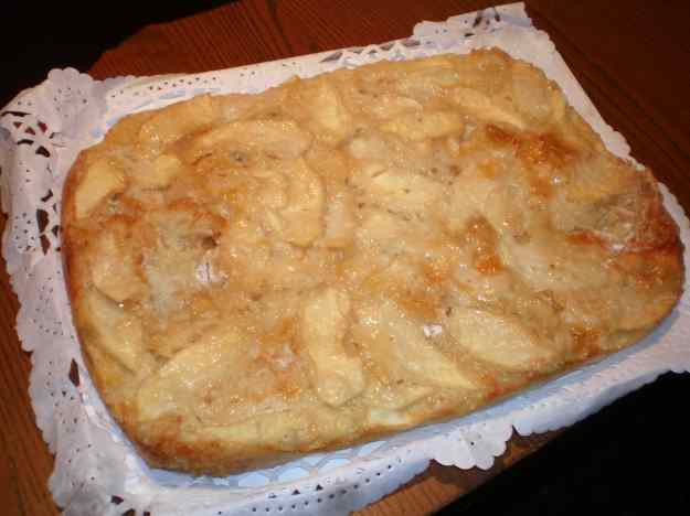 Després hi posem la compota de poma com a base i les làmines de poma .
