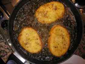 - Una vegada estigui banda i banda pasada per l’ou, ja amb una paella amb força oli, les fregim.