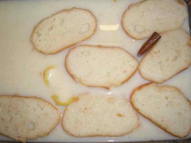 - En un gibrell es posa llet, sucre, canó de canyella, canyella en pols i les peles, es tasta que estigui força dolç, es remena fins que el sucre sigui ben desfet.