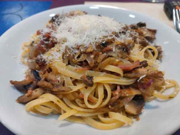 - Coure la pasta segons els indicacions del paquet, escórrer-la i barrejar-la amb el sofregit.