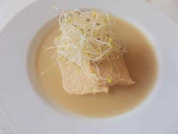 - En aquella cassola de fregir el peix ,amb l’oli que us ha sobrat hi sofregiu aquesta picada una mica i de seguida hi afegiu el vi blanc i un cop reduït , hi poseu el rap, el brou de peix i el safrà.