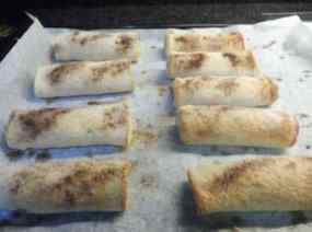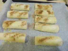 - Desfem la mantega i pintem els canalons i escampem sucre i canyella