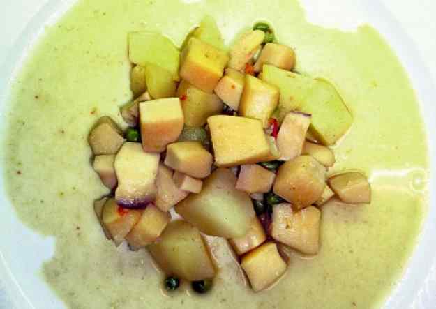 - Tallem el mango i el platant tambe a quadrets petits,i afagim a la poma i pera un cop estigui freda