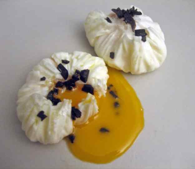 Podeu servir els ous amb unes làmines fines de tòfona per sobre.