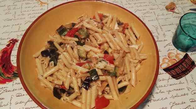 Macarrons amb albergínia i carbassó