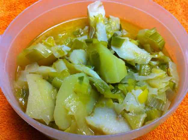 - Ratllem la cebai el porro i poxem una mica a la paella