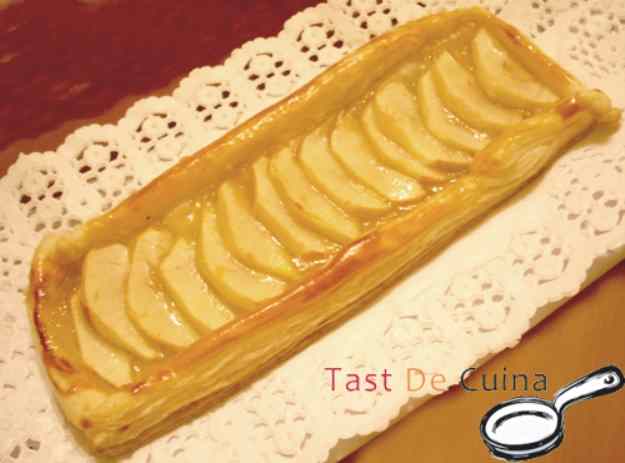 3. Un altra variant seria fer tot el mateix, però sota de la poma posar-hi crema pastissera en comptes de la melmelada.