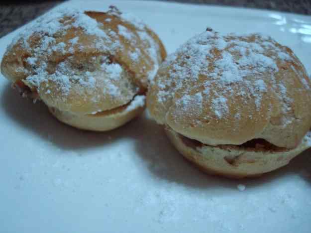 - Una vegada fets els profiterols, dos opcions, farcir-los amb la pispa pastissera o tallar-los per la meitat, com he fet jo, i farcir-los amb la crema.