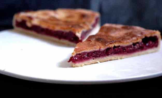 - – Folrem el fons amb un dels cercles ( el gruixut ), emplenem amb la preparació de les cireres i tapem amb l’altre cercle.