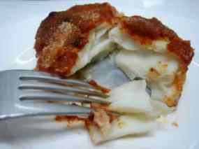- En una safata pel forn, posar un llit de ceba, a sobre el bacallà fregit.