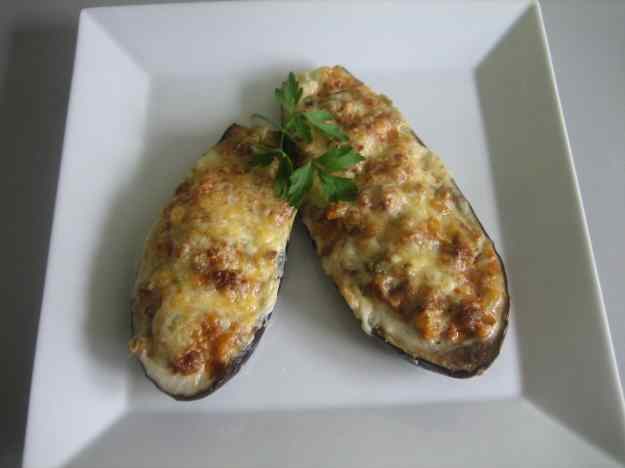 - Seguidament, farciu les albergínies amb la carn picada i les verdures i cobriu-les amb la beixamel i el formatge ratllat. Poseu-les en un safata i gratineu-les al forn fins que quedin ben rosses.