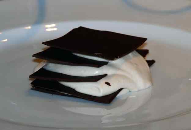 - Intercaleu els rectangles de xocolata amb la mousse de plàtan en un plat.