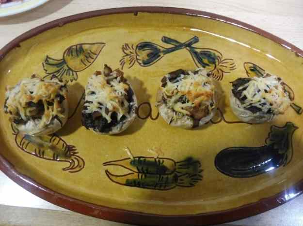 - Posem els xampinyons en una plata per forn i omplim amb la barreja. Hi ratllem el parmesà i enfornem uns minuts.