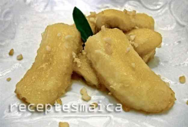 - Col·loqueu els plàtans en el plat i poseu per damunt l’ametlla trinxada, serviu.