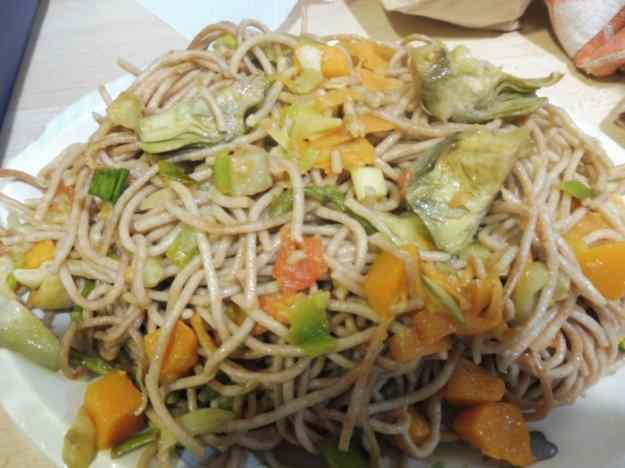 - Posem oli a la paella i afagim les verdures i les sofregim, un cop sofregides les barregem a la pasta i remenem tot i a punt per dinar