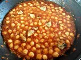 - Pelem una mica les carxofes, tallem un bon tros de la part de dalt de les fulles i fem làmines amb la resta. Ho fregim a la paella amb oli d’oliva. Quan estigui daurades les retirem i les reservem.