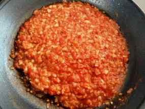 - En la mateixa paella, afegim una mica més d’oli d’oliva i fregim l’all, la ceba i el pebrot, que prèviament hem tallat a trossets.