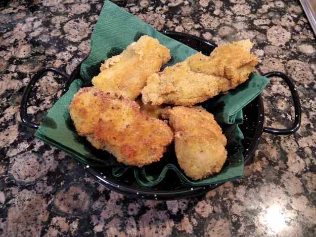 - La passem per l’ou batut i farina de galeta. En una paella amb oli ben calent les fregim. Les deixem damunt de paper absorvent de cuina per treure l’excés d’oli.