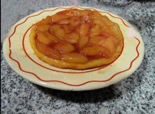 - En un motllo (o en la mateixa paella si pot anar al forn) es coloquen les pomes encavalcades.
