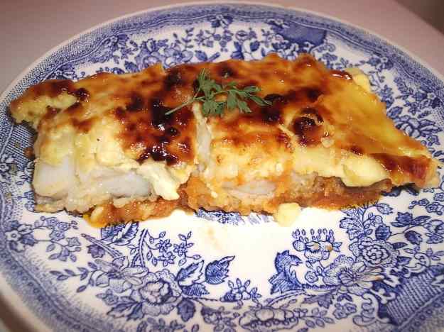 - En una plata per anar al forn, o en plats individuals, hi posem: el sofregit de tomaquet, el bacallà fregit, l’ allioli per damunt i la mel (desfeta uns minuts al microones).
