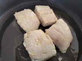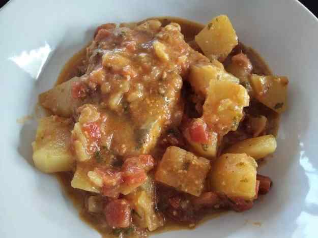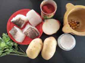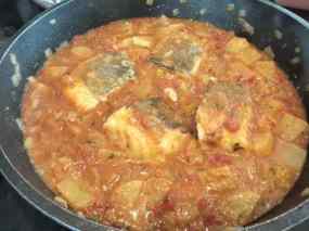 - Finalment hi afegim el bacallà, que està parcialment cuit, i el deixem que s´acabi de coure amb el guisat de patates un màxim de cinc minuts.