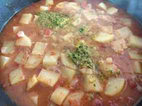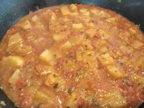- Seguim amb la cocció de les patates fins que aquestes estiguin cuites del tot i el guisat estigui al seu punt just.