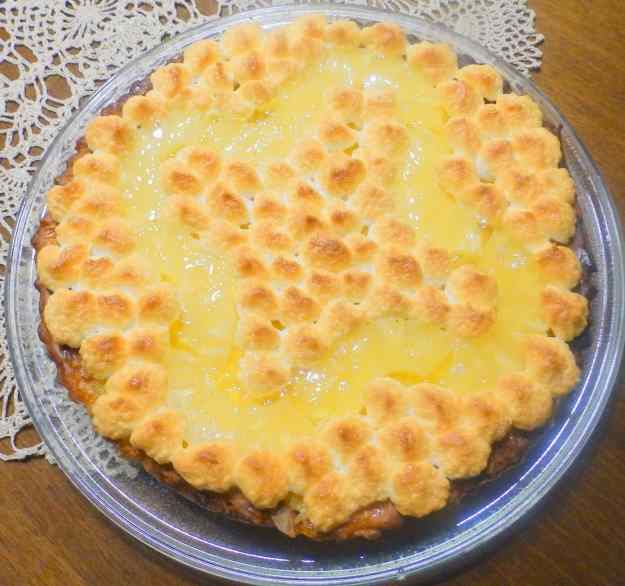 - Adorneu el pastís amb la merenga dins d’una mànega pastissera i amb els trossos de pinya, (primer, feu la distribució de la pinya i ompliu els buits amb la merenga).