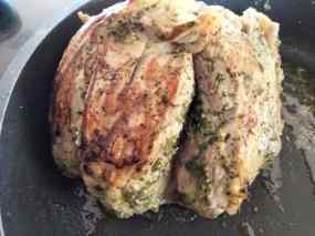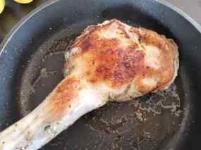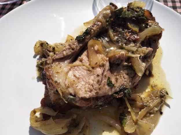 - També mentre s´estan coent el xai posem a marinar unes quantes fulles més de menta amb vi ranci per al toc final de la cocció, que serà després d´una hora i mitja de forn. Posem les fulles de menta marinades per sobre i el tornem a posar al forn, però aquesta vegada amb el gratinador encès per acabar de torrar-lo i que la menta tingui un toc cruixent.
