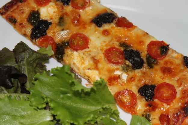 - Podeu acompanyar la pizza amb unes fulles d’enciam, com ho he fet jo, o simplement tallada a trossos.
