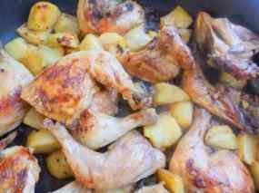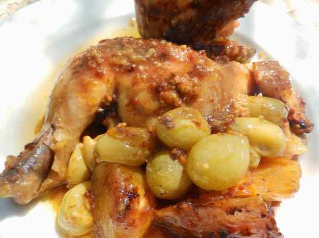 - Aboqueu a la cassola pel damunt dels pollastrons i de les patates, poseu els grans de raïm i coeu amb la cassola tapada 10 minuts més.
