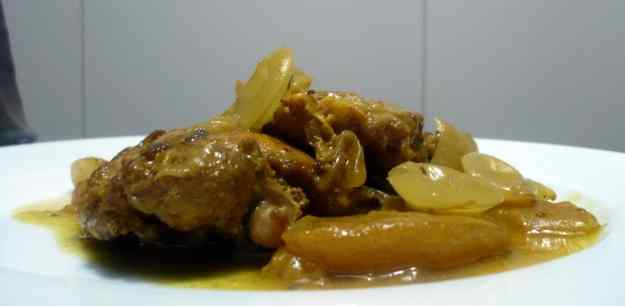 Origen: POLLASTRE AL CURRI AMB POMA I RAIMS DE LA SORT