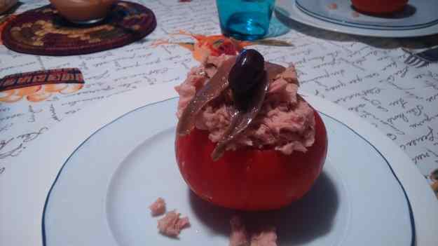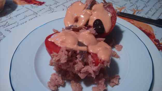 - Ompliu-los amb la tonyina, decoreu amb anxoves i les olives negres.