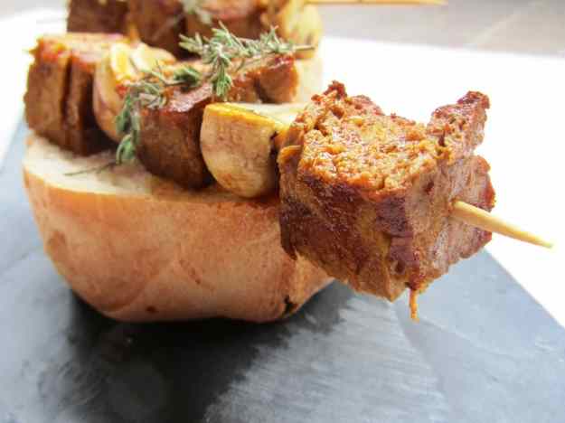 - A l’endemà prepareu les broquetes alternant un tros de seitan amb un mig xampinyó net i fregiu-les a la paella a foc mig.