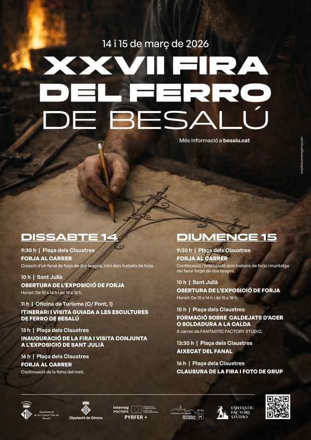 Besalú celebrarà la XXVII Fira del Ferro. El poble serà el marc de la forja al carrer i rebrà ferrers i artesans del ferro d’arreu del territori. En el marc del projecte Pyrfer +, l’associació Acunç desenvoluparà un cap de setmana ple d’activitats relacionades amb el món de l’artesanat del ferro.