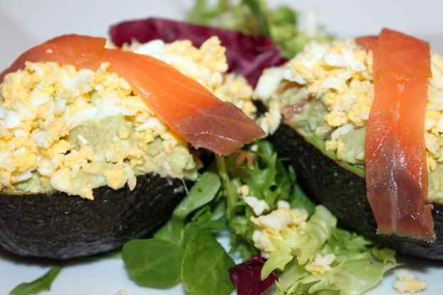 - Aixafeu la polpa dels alvocats amb una forquilla i afegiu-hi la tonyina, la maionesa i el salmó fumat tallat a quadrets petits.