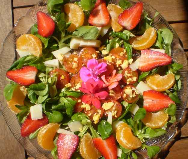 - Es pela la mandarina i es van posant els grills al voltant per sobre dels canonges i alternant amb les maduixes tallades a làmines.