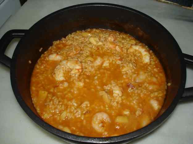 12. Afegiu el brou de gambes bullent i coeu l’arròs 8 minuts a foc fort i 8 minuts a foc lent.