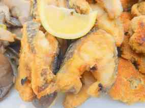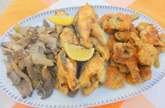 Morena arrebossada amb carxofa i gírgoles