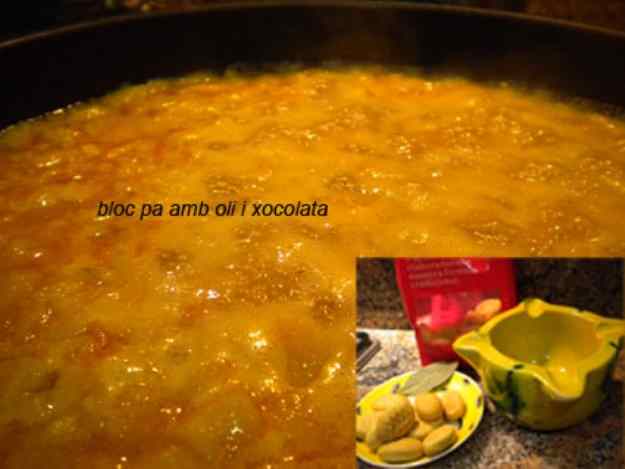 - Un cop fet el sofregit, afegiu el peix amb el seu brou colat i una fulla de llorer i les galetes xafades que teniu al morter.