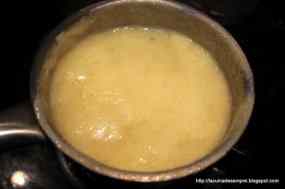 - Escalfeu el suc de préssec amb un pessic de sal marina, els flocs d’agar-agar i l’endolcidor. Coeu-ho, sense tapa, a foc baix durant 10 minuts. Afegiu-hi el coco ratllat.
