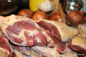 - Posem el magret amb la part de la grassa capa amunt, i per facilitat la cocció farem uns talls sobre el greix sense arribar a tocar la carn A continuació, farem el mateix en la direcció oposada procurant que ens quedin uns rombes, tal com es veu a la foto. Salpebrem i reservem.
