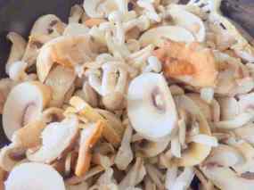 - Deslligueu i talleu el conill a medallons de uns 2 dits de gruix, col·loqueu a la cassola amb el suc, afegiu la resta d’orellanes i feu coure durant una ½ hora.