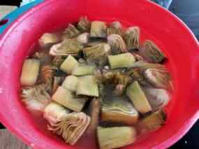 - Tallam les carxofes a daus i les patates en rondanxes.