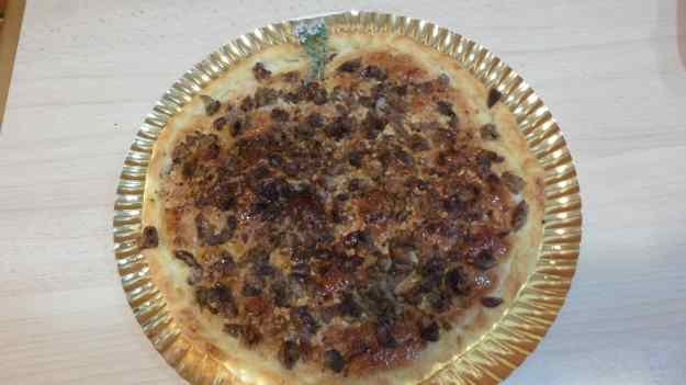 - A la zona central hi posem llardons esmicolats, una mica de canyella, sucre i ho ruixem amb gotetes d’anís (per exemple, Anís del Mono). Es plega una part de la massa per sobre i es torna a repetir l’operació. Finalment es plega la tercera sobre les dues anteriors i es tanca minuciosament amb una forquilla, segellant els quatre cantons.