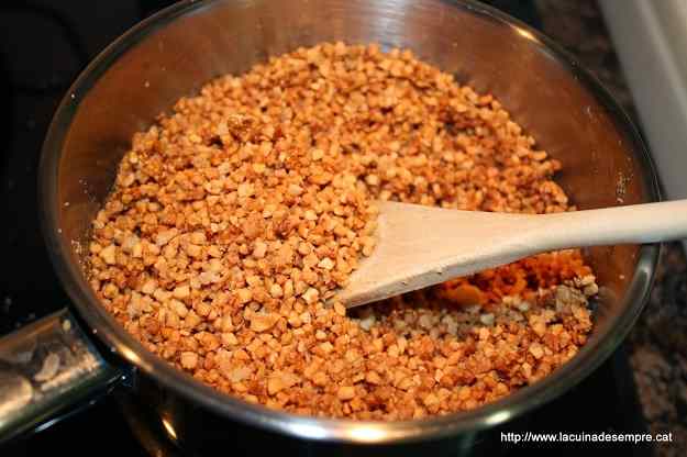 - Barregeu la farina d’ametlla amb el sucre llustre, bateu la clara d’ou, i afegiu-ne la meitat, si cal, n’afegiu més, ha de quedar una pasta que es pugui manejar i que no s’enganxi als dits.