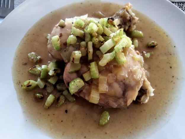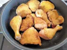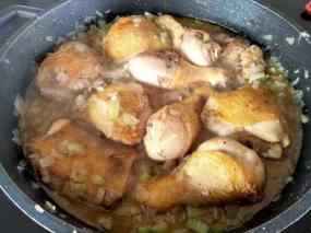 - Finalment hi posem els talls de pollastre rostits, remenem bé i ho deixem a foc lent uns cinc minuts més.