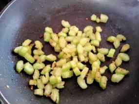 - Per fer la salsa saltejarem primer les llavors de comí i cilantre, i tot seguit hi posarem la ceba, l´altre dent d´all i un trosset de ginger picats . Deixem coure a foc lent vint minuts.